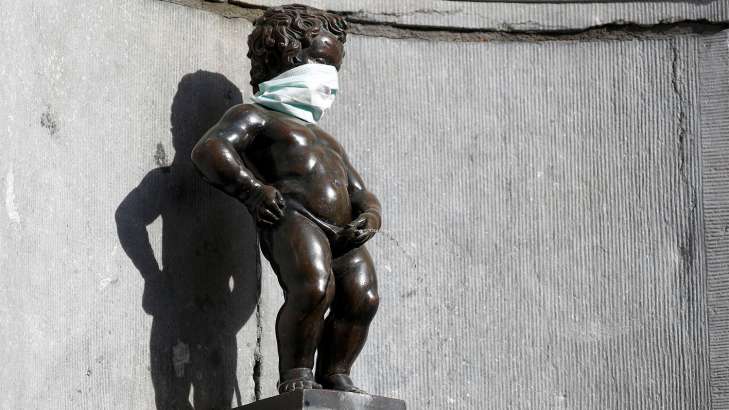 На "Писающего мальчика" в Брюсселе надели медицинскую маску