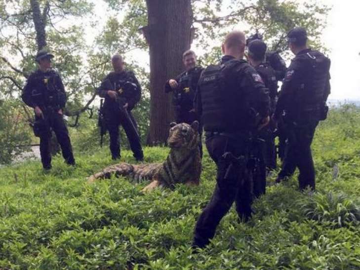 Британские копы ловили тигра: позже выяснилось, что животное было скульптурой