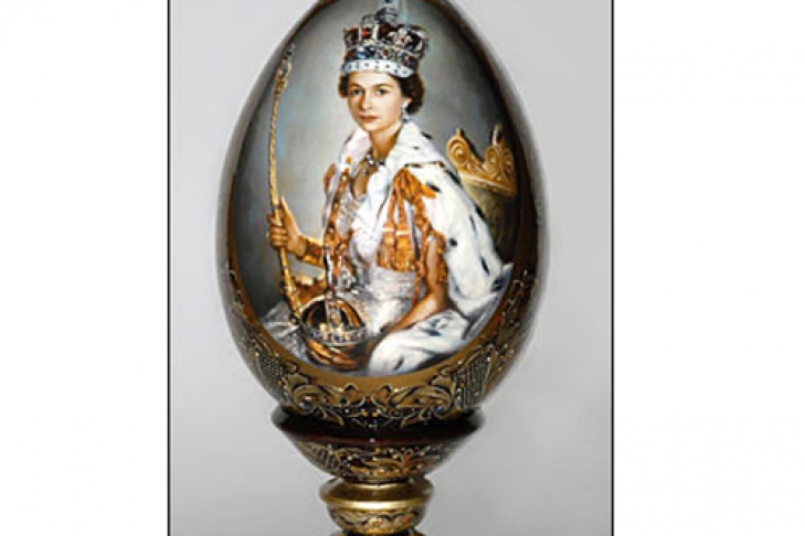 На писанках выставленных в Лондоне, изображены английские мотивы. Есть и яйцо с портретом королевы Елизаветы II.