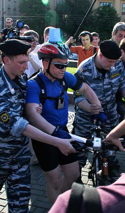 Этот парень, очевидно, предвидел неадекватную реакцию московской милиции, а потому и одел шлем посерьезней – с забралом