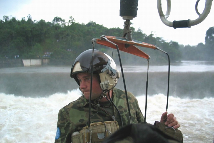 Возле населенного пункта Бьюканан в Либерии состоялись практические тренировки по проведению поисково-спасательных работ над водой вертолетчиков и спасательной парашютно-десантной группы из состава 56-го отдельного вертолетного отряда ВС Украины. Отдельная группа украинских миротворцев осуществляла спасательные работы на водной глади на лодке.