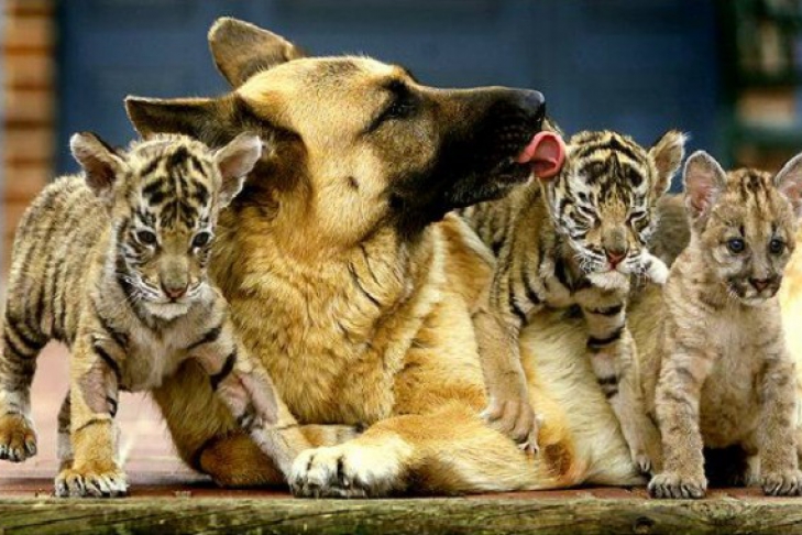 В зоопарке китайского города Саньмэнься от пары тигрят вскоре после рождения отказалась родная мать, трехлетняя тигрица по кличке Ху Ню, сообщает издание Синьхуа. Для того, чтобы не дать тигрятам умереть, им нашли приемную маму – молодую кормящую овчарку. Именно она вскармливает маленьких животных грудным молоком.