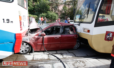 В Москве произошло ДТП с участием двух трамваев и автомобиля «Chevrolet.