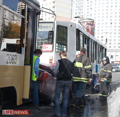 Из-за неосторожности девушки-водителя произошло жуткое ДТП с участием трамваев (ФОТО)