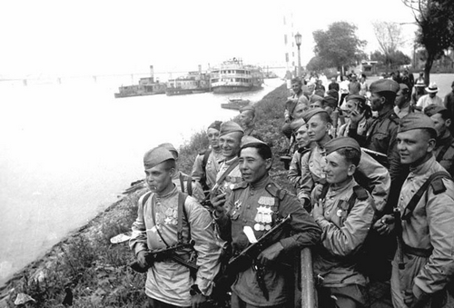 Встреча воинов-освободителей в Харбине. Их встречали и китайцы и русские. И те и другие, со слезами радости на глазах.