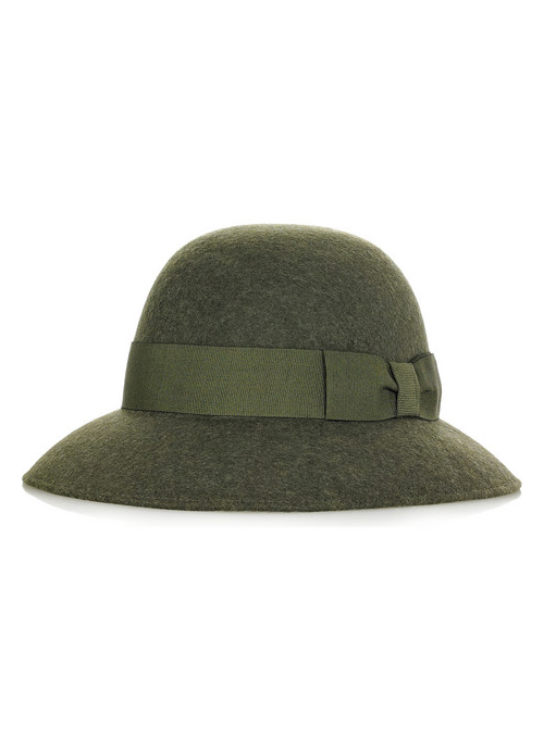 Женственная шляпа цвета хаки подойдет к нарядам в классическом стиле. Носите с элегнтными шерстяными пальто.