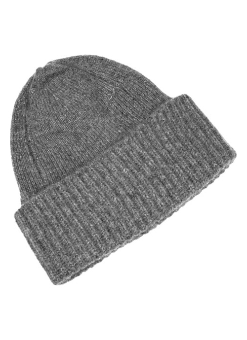 Серая шапка из шерстяного трикотажа незамысловатого дизайна идеальна для молодой жительницы мегаполиса, не скованной офисным дресс-кодом, а также для загородних прогулок выходного дня.