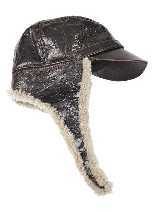 Кожаная кепка из намеренно «состаренной» кожи с отделкой из искусственного меха подойдет для городских уикендов. Составит хороший лук с парками, брюками-скинни и ботинками в милитари-стиле.