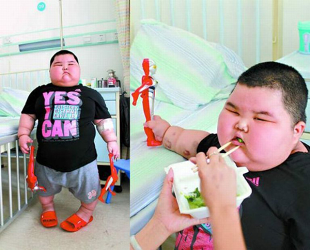 Родители 3-летнего Cяо Хао в отчаянии - ребенка выгнали из нескольких детских садов, объяснив, что мальчик представляет серьезную угрозу для здоровья других детей. И руководство дошкольных учреждений в придирчивости не обвинить – в 3 года мальчик весит около 64 кг, и любая детская шалость может обернуться трагедией: случайно упав на сверстника, Сяо Хао может элементарно задавить его массой своего тела.