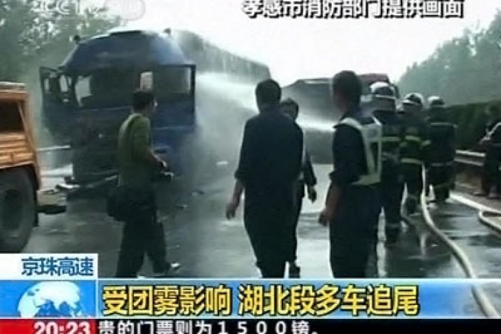 На трехкилометровом участке упомянутого автошоссе на территории провинции Цзянси вчера в 6:50 утра по местному времени внезапно возник густой туман. Из-за слишком низкой видимости произошел ряд столкновений автомобилей, в результате которых серьезно повреждены или уничтожены 19 автомашин. Кроме этого, возгорелись семь грузовиков.