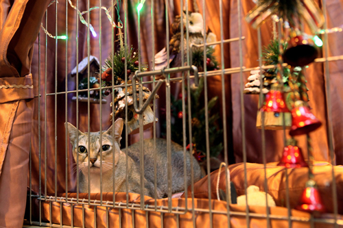 На выставках каждой кошке выделяется тщательно продезинфицированная клетка. Обычно клетки драпируют красивыми шторками, которые служат не только украшением клетки, но и изолируют животных друг от друга, а при необходимости и от посетителей