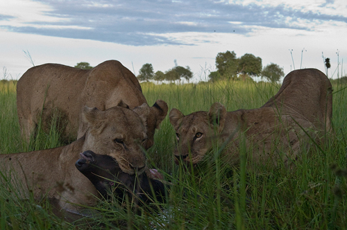А в феврале 2010 года начался отел у буйволов, и львицы без труда поодиночке или по двое, трое, как в Макдональдсе ходят за стадом и собирают новорожденных телят, которые ежедневно рождаются в стаде