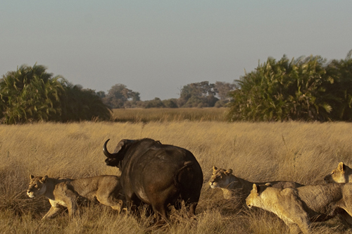 Днем буйволы расслабляются и начинают передвигаться, кормиться и в этот момент нападают львы. За годы львы этого прайда выработали тактику охоты, которая характерна только для этого места и только для этого прайда, так как его специализация - буйволы