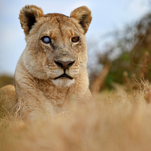 Это самая старая львица прайда с бельмом на глазу, но как говорят гиды -это самая опытная охотница, именно она начинает все охоты и именно она убивает всех котят