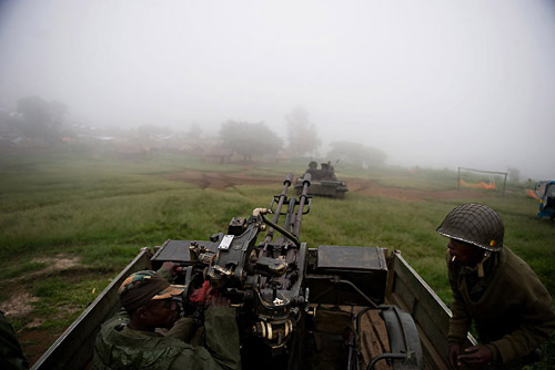 Конголезские солдаты готовят оружие для обстрела позиций сил генерала Лорента Нкунды в горах Мулинди, примерно в 65 км к северо-западу от города Гома