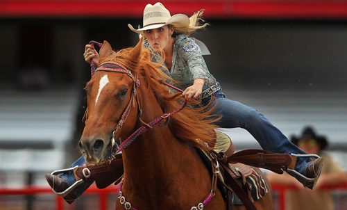 Родео включает себя несколько видов состязаний, среди которых - соревнования по вестерн-джигитовке, в которой традиционно принимают участие именно женщины.
