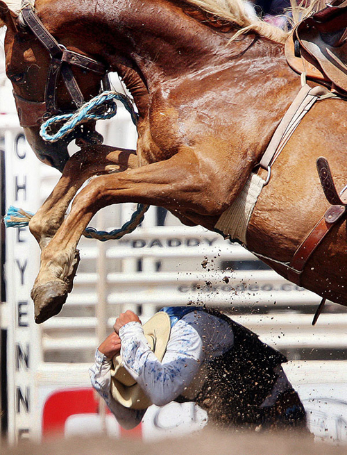 Родео – чрезвычайно опасный вид спорта, исторически сложившийся в среде мексиканских и американских ковбоев. Состязания могут быть самыми разными: ловля взбесившегося быка на лассо, скачки вокруг бочек, заваливание быка, и, конечно же, скачки на диких быках и лошадях. Случается, что фотографу удается запечатлеть наиболее яркие и шокирующие моменты этого опасного вида спорта.