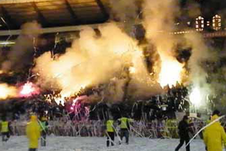 Газ использовала полиция, чтобы прекратить беспорядки на трибунах
