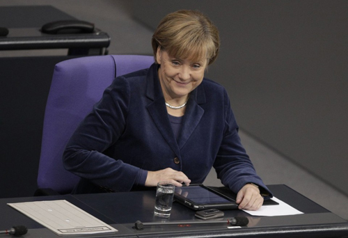 Снимок сделан во время заседания немецкого парламента в Берлине. Ее Wikileaks достаточно мягко характеризует как человека, совершенного далекого от всяких авантюр, еще сообщается, что канцлеру Германии американские дипломаты дали кличку «Ангела Тефлон Меркель».