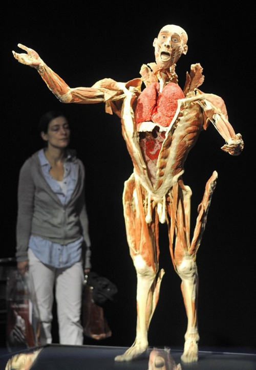 «Миры тела» – это передвижная выставка, где на всеобщее обозрение выставляются человеческие останки (трупы целиком или только отдельные органы), прошедшие особую обработку, обеспечивающую их длительную сохранность. Создателем этой ставшей уже знаменитой выставки является немецкий анатом Гюнтер фон Хагенс, разработчик процесса пластинации – того самого метода, который позволяет очень долго сохранять мертвые тела. (Внимание! Материалы представленные в этой фотоновости могут показаться неприятными или пугающими.)