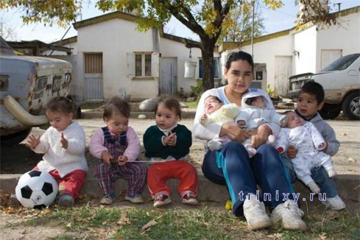 Аргентинская девушка Памела к семнадцати годам успела родить семерых детей. Первый ребенок появился на свет, когда ей было 14 лет, потом в течение двух лет у нее родились две тройни, сообщает trinixy.ru