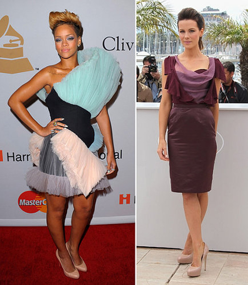 Слева - Рианна в туфлях Christian Louboutin, справа - Кейт Бекинсейл в туфлях Brain Atwood