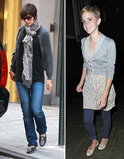Слева - Кэти Холмс, справа - Эмма Уотсон