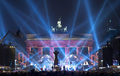 Люди собираются, чтобы отпраздновать 2011 год перед Бранденбургскими воротами в Берлине