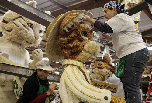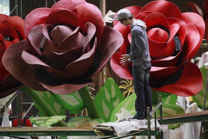 Традиция проводить красочный новогодний парад в калифорнийском городе Пасадена уходит корнями в 19-й век. Это грандиозное карнавальное шествие, которое ежегодно проходит в Пасадене 1-го января, носит название Парада Роз и в этом году проводилось уже в 122-й раз. Предлагаем вам взглянуть, как проходит подготовка к этому масштабному мероприятию.