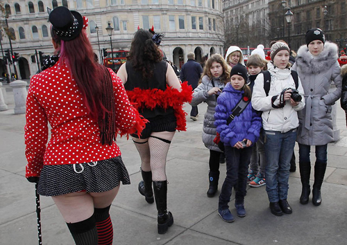 Регистрация участниц «массового бурлеска» на Трафальгарской площади проходила с 9:00 до 9:30 утра