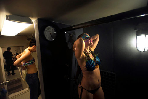 Профессиональная русалка Линден Уолберт (слева) из Лос-Анджелеса проконсультировала девушек, нанятых для роли русалок в баре. Справа – гример Роуз Хилл